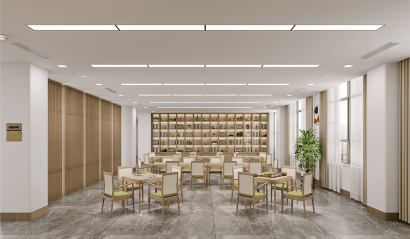 北京一福寿山福海养老服务中心,养老服务被升华为一种科学的艺术。中心构建了涵盖医疗、护理、餐饮、居住及服务的“五位一体”新中式服务体系。针对认知障碍长者,社区独创了“养老益智社区”模式:通过色彩感知训练、怀旧影像放映、涂鸦墙创作以及维度空间遐想等非药物干预手段,配合环形走廊设计防止走失,科学评估失智程度分期,建立生活风险干预措施,有效延缓认知衰退。对于术后康复和失能长者,专业的康复医疗室与多感官活动室提供了从身体机能恢复到心理慰藉的全方位支持。