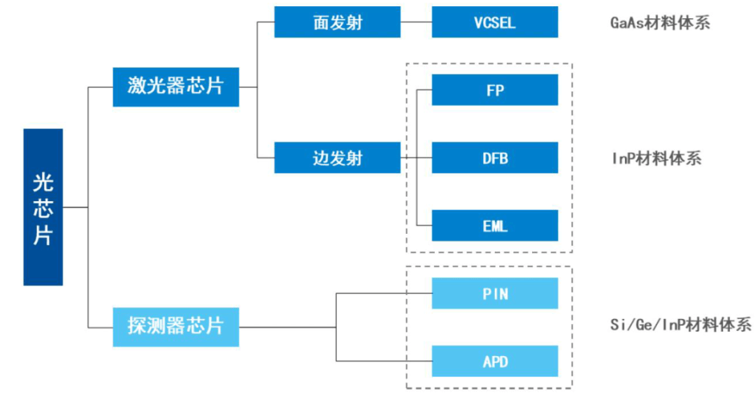 光芯片是实现光电信号转换的基础核心元件,为三五族化合物半导体材料制成,激光器芯片和探测器芯片共同构成光芯片