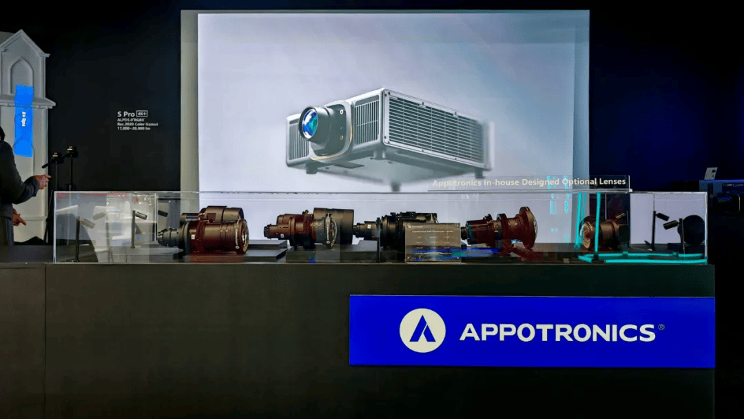 除S Smart及S Pro系列的动态演示外,现场还同步展出了为其配套的多款自研镜头。这些镜头投射比覆盖0.36:1至6.8:1,支持360°全方位安装与全电动镜头位移,可轻松适配复杂的工程安装环境。
